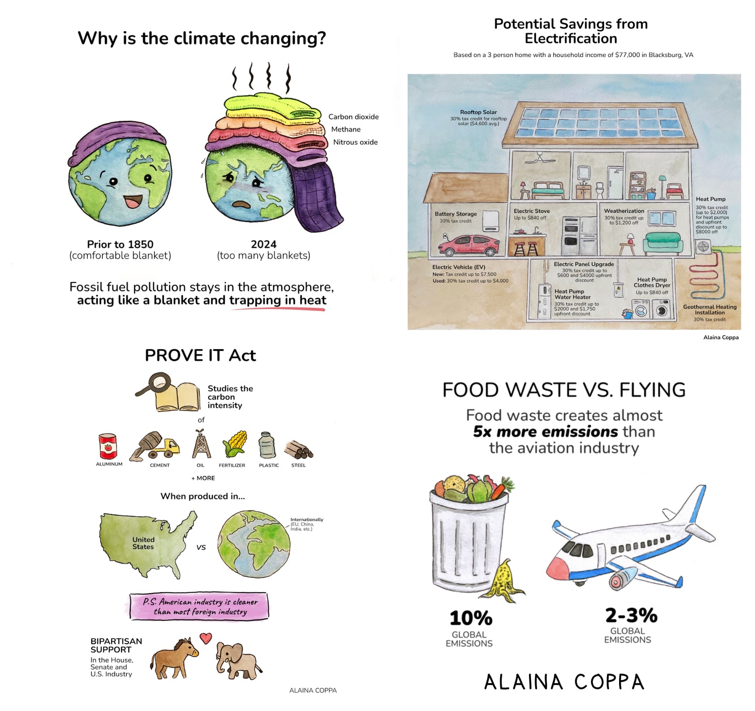 Before working in climate, I co-founded a kids coding program. I learned how to translate a complex topic like computer science into something that an 10 year old can understand. I've been able to take those same skills and apply them to climate science. I like to make art that is as accessible for a 5 year old as it is to a 50 year old.