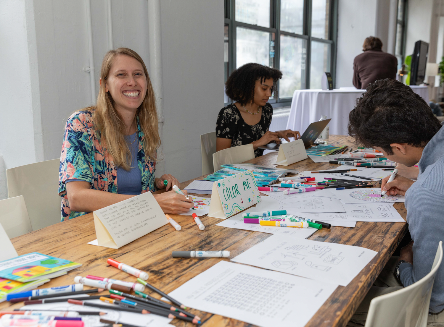 Hosting a conference or retreat? Nicole creates a dedicated space for calm and creativity using pages from her Clean Energy Coloring Book. These pop-up coloring lounges help attendees recharge while fostering connection and conversation.
