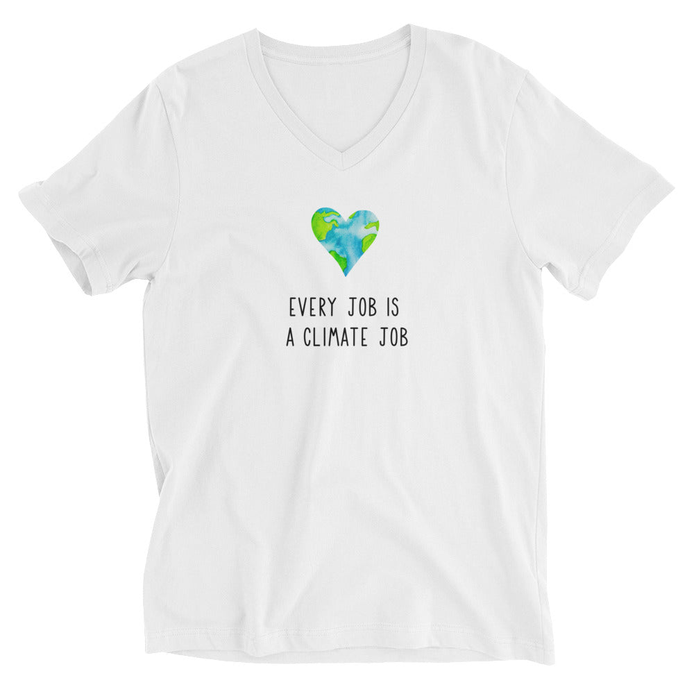 Every Job is A Climate Job with Earth Heart Unisex Short Sleeve V-Neck T-Shirt